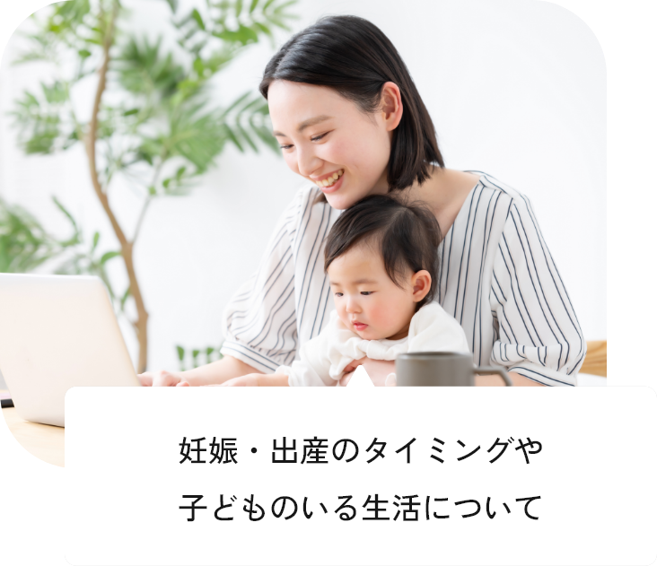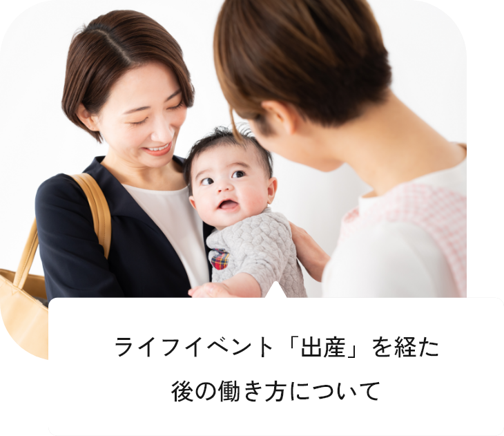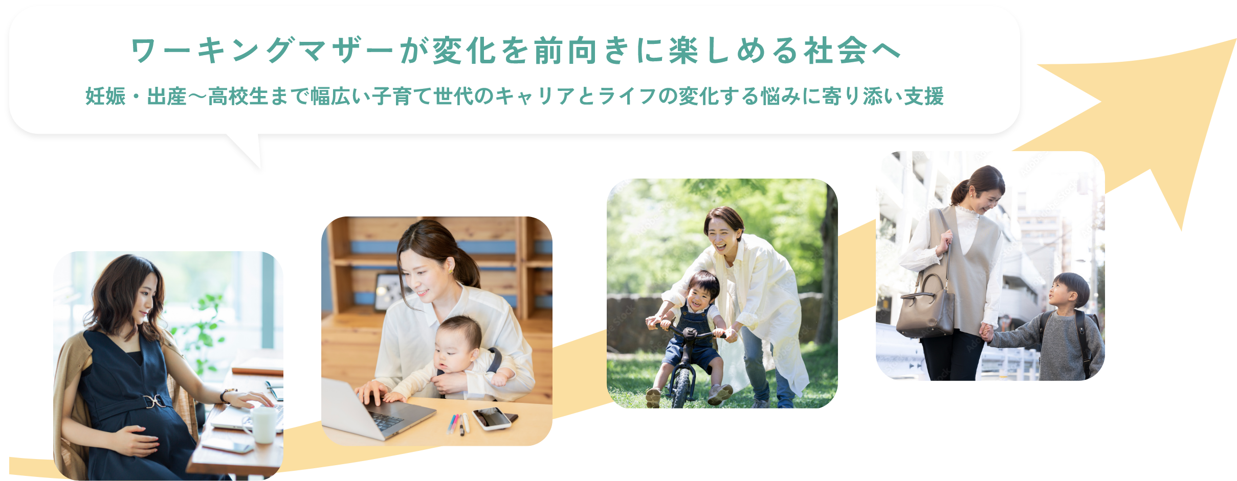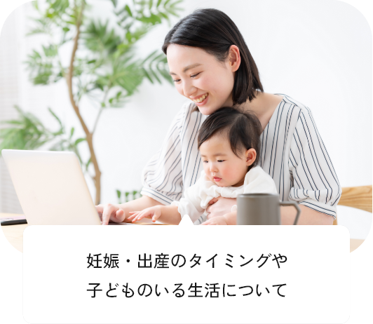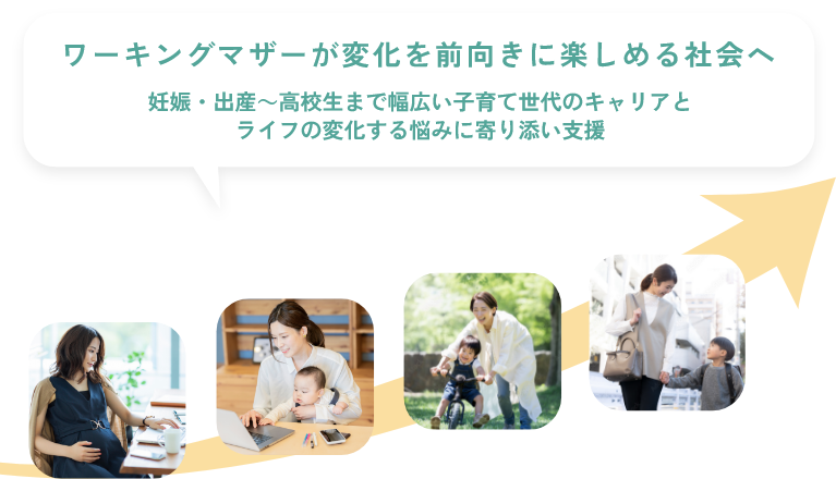 主に妊娠~産休・育休~復帰後の方にご利用いただけます。お子様が小学校・中学校くらいまでの方が想定層になります。 -