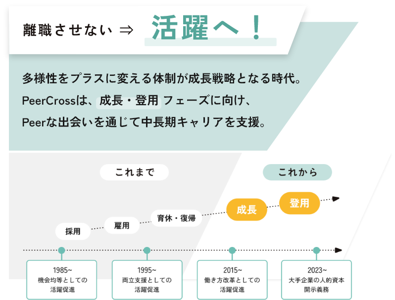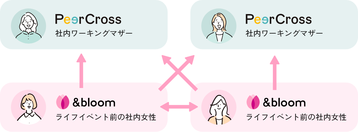 ライフイベント前の女性が身近なワーキングマザーに将来のキャリア・ライフを相談することで、幅広く女性のモチベーション向上を支援します