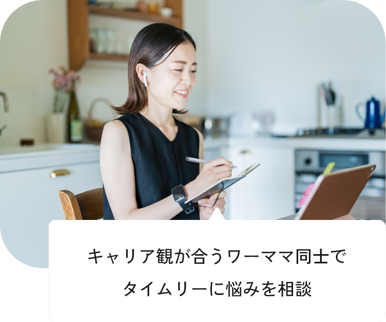 スマホアプリで参画企業のワーママ同士のマッチングをご提供します。