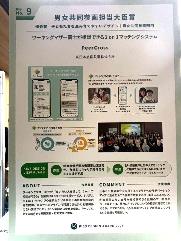 PeerCrossは第19回キッズデザイン賞において、男女共同参画担当大臣賞を授賞いたしました。