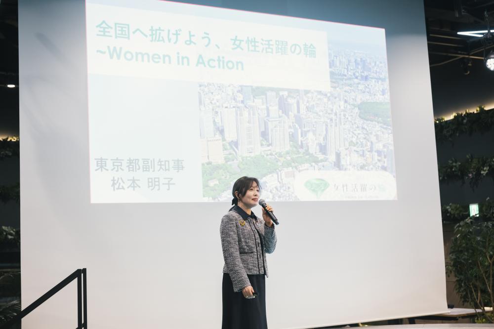 当日はサテライト会場含め200名ほどが会場に集まり、赤沢経済産業大臣、東京都松本副都知事のスピーチに続き、書く支援団体の2030年までに向けた行動宣言など、更に女性が繋がり強く進んでいくエンパワメントの時間となりました。
